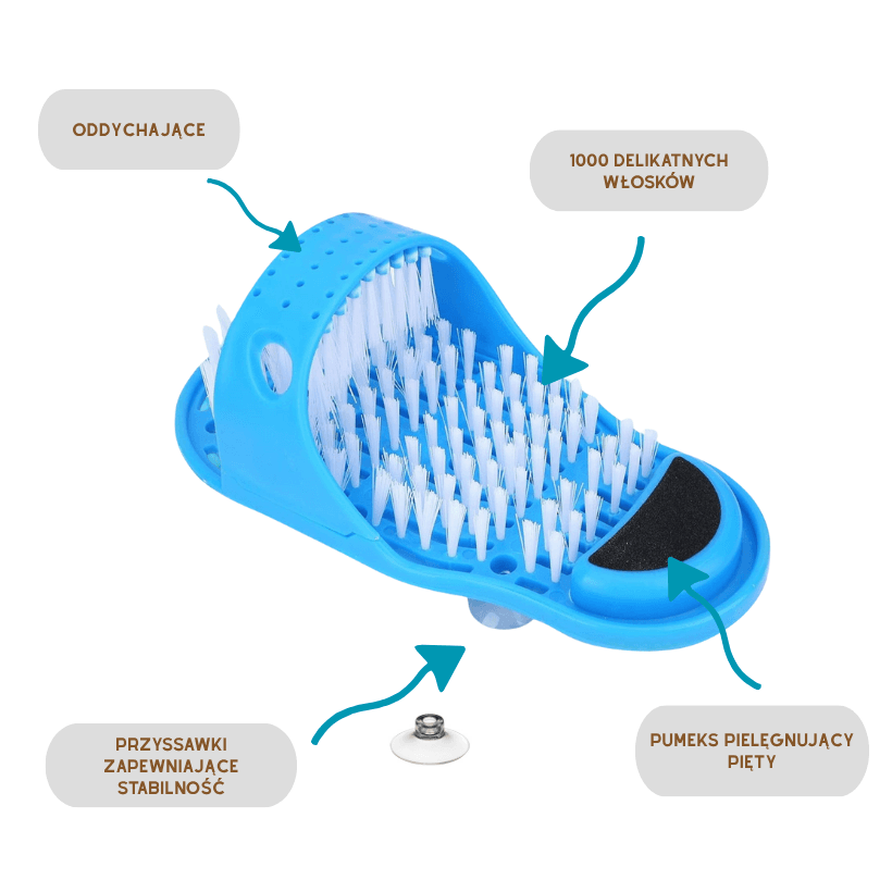 UWIELBIAM ten przyrząd do szorowania stóp!! Kupiłam już trzy, do prysznica w sypialni, jeden jako prezent dla syna i jeden do wanny/prysznica na górze. Tak, można go używać w wannie z prysznicem — kiedy chcesz wziąć kąpiel, po prostu odklej go, a po kąpieli z powrotem przyssij. Ten czyścik dokładnie myje przestrzenie między palcami i wszystkie części stopy – nawet te bardzo zrogowaciałe miejsca na pięcie. Polecam go każdemu, młodszym i starszym – to świetny, mały wynalazek!!!